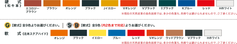 ※フレキシブルジャパンハイドは、皮革の硬さはお選びいただけません。 ※ブロンズオーダー(KB)は選択できません。 |